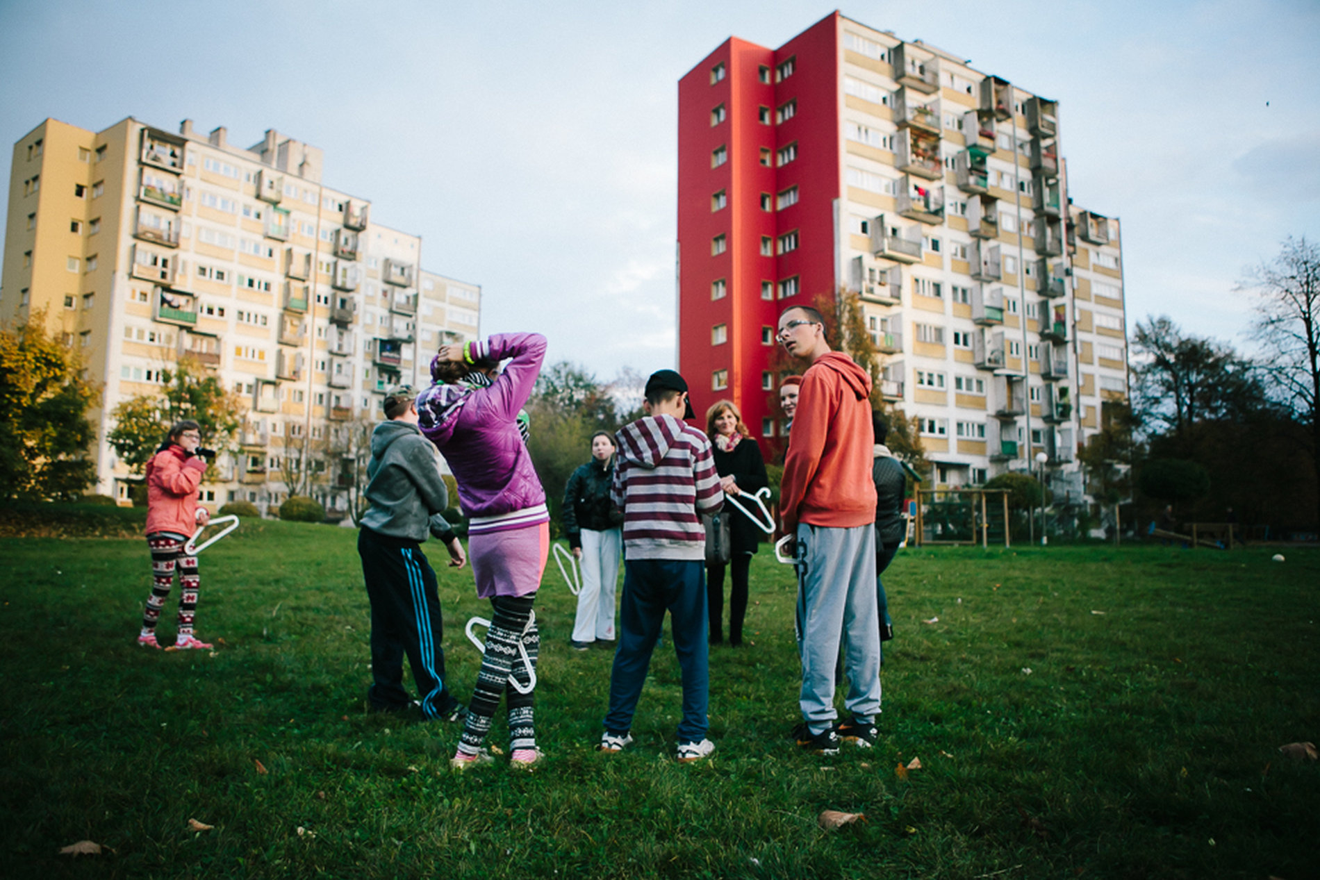 Projekt osiedla powstał w latach 1960–1963, natomiast jego realizacja trwała od 1964 do 1972 roku. Założenie łączy w sobie dwie wymyślone przez Oskara Hansena koncepcje: Linearnego Systemu Ciągłego oraz Formy Otwartej. Osiedle jest wyjątkowym dziełem architektonicznym, wzbudzającym zachwyt, ale i wywołującym kontrowersje. Podczas realizacji warsztatów w ramach projektu Sztuka-czuję to młodzież słabowidząca i niewidoma miała możliwość poznania osiedla i wyrobienia własnej opinii na temat miejsca, gdzie zostały wcielone w życie utopijne wizje Oskara Hansena.